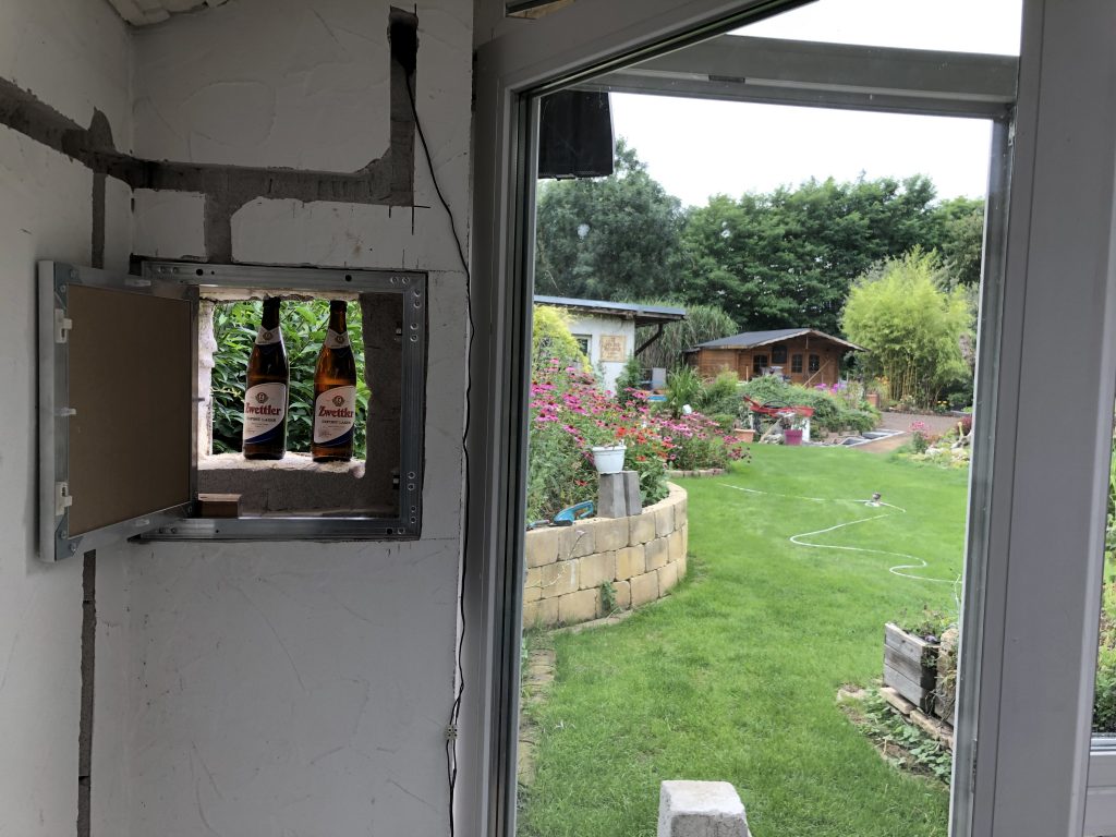 Bis zum Zumauern des Elektroschachtes eignet sich der Durchbruch für ein Feiertagsbier mit dem Nachbarn.