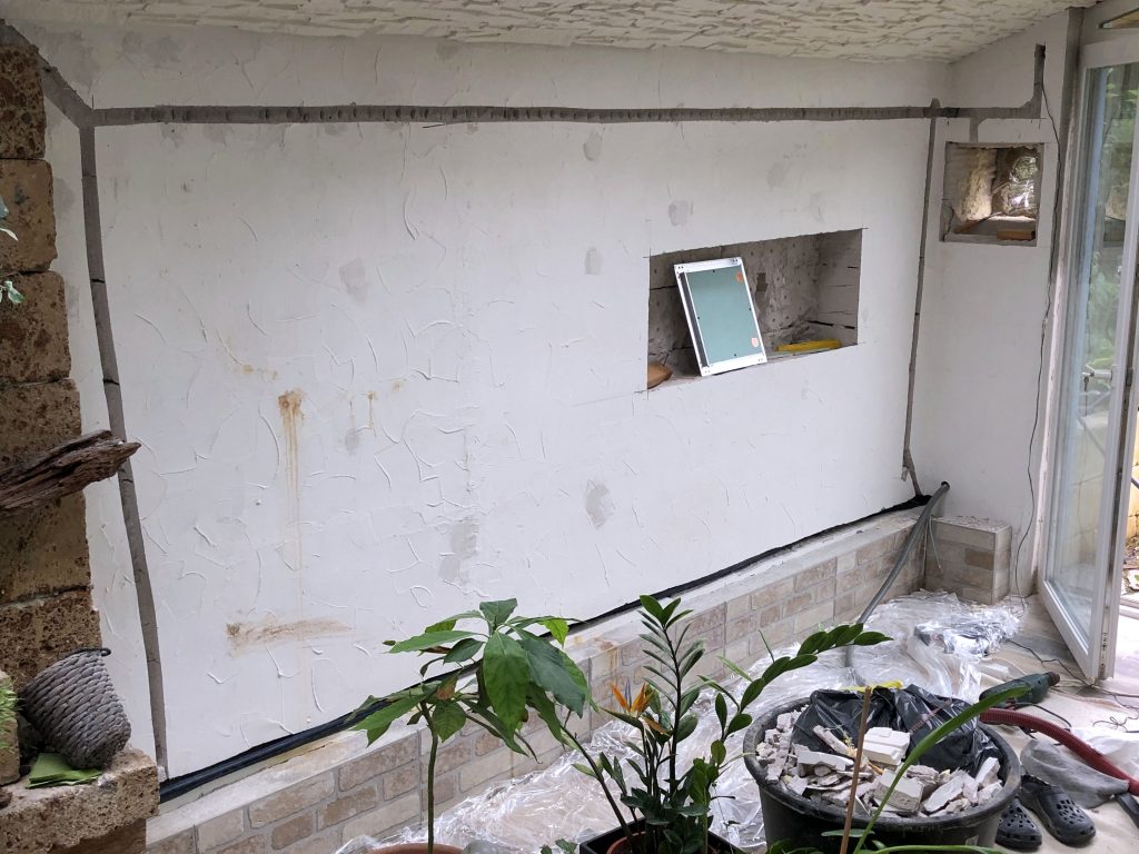 Neben Unterputz Elektroinstallationen wurde auch für das Rohr der zukünftigen Bewässerungsanlage gestemmt.