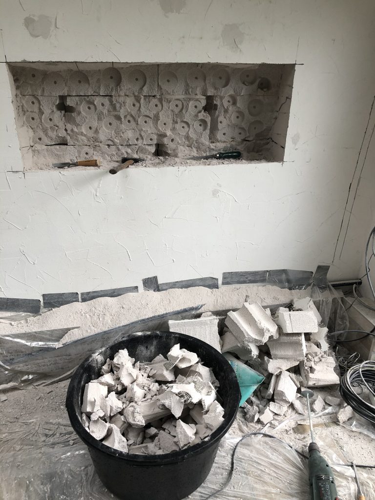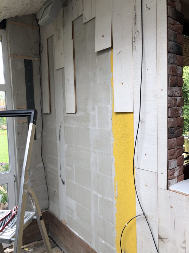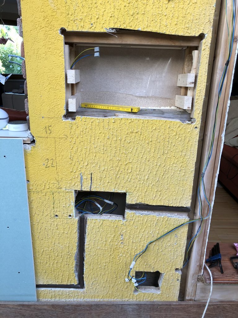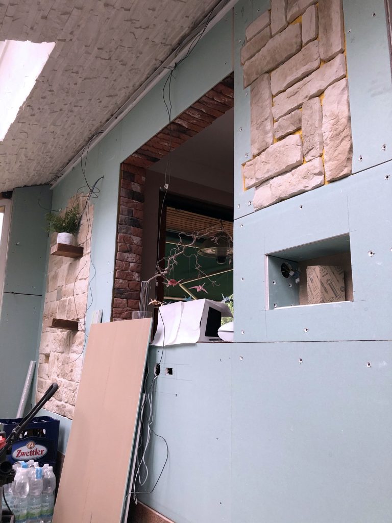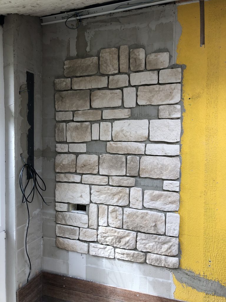 Nach Stemmarbeiten und der Unterputz Elektroinstallation wurden ein Teil mit Steinverblendern dekoriert.